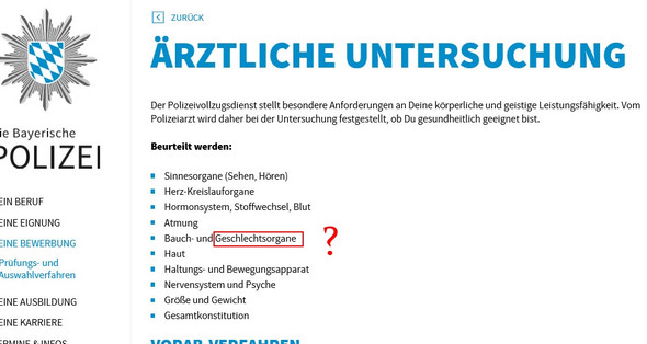 Arztliche Untersuchung Polizei Eignungstest Bayern Geschlechtsorgane Arztliche Untersuchung