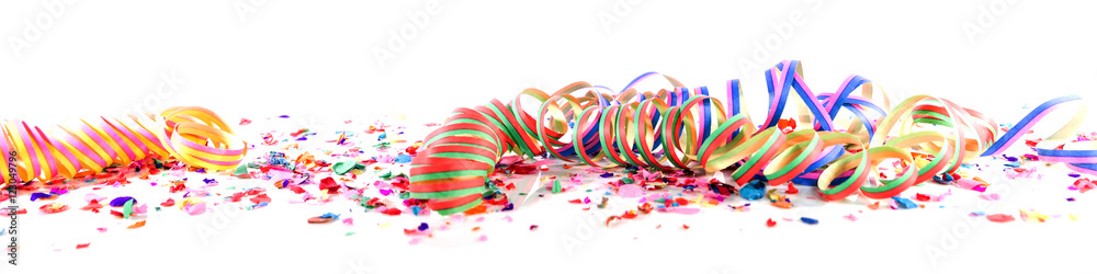 Fototapete Luftschlangen Und Konfetti Vor Weissem Hintergrund Panorama V Poth