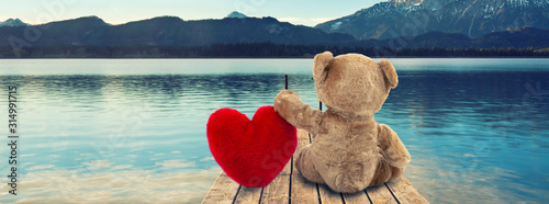 Fototapete Valentinsgeschenk Teddy Mit Herz Am Steg Fototapeten Jenny Sturm