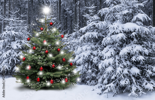 Fototapete Beleuchteter Christbaum Im Winterwald Fototapeten By Studio