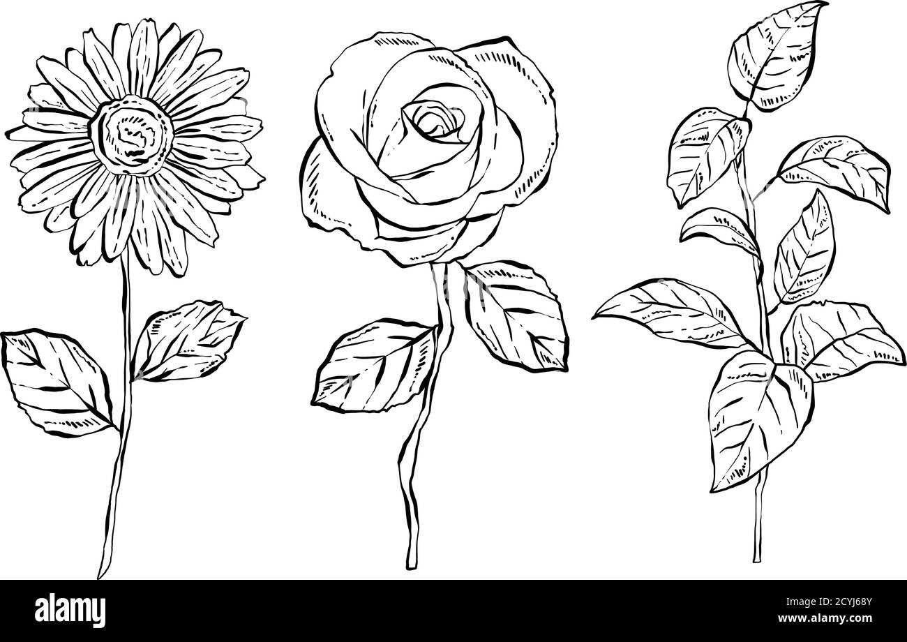 Botanik Set Vintage Blumen Schwarz Weiss Illustration Im Stil Von Stock Vektorgrafi Crushpixel