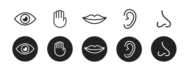 Human body senses line vector line icons. Find Icon Set Five Human Senses Diagram stock images in HD and millions of other royalty-free stock photos illustrations and vectors in the Shutterstock collection. Vision eye smell nose hearing ear touch hand taste mouth with tongue.
