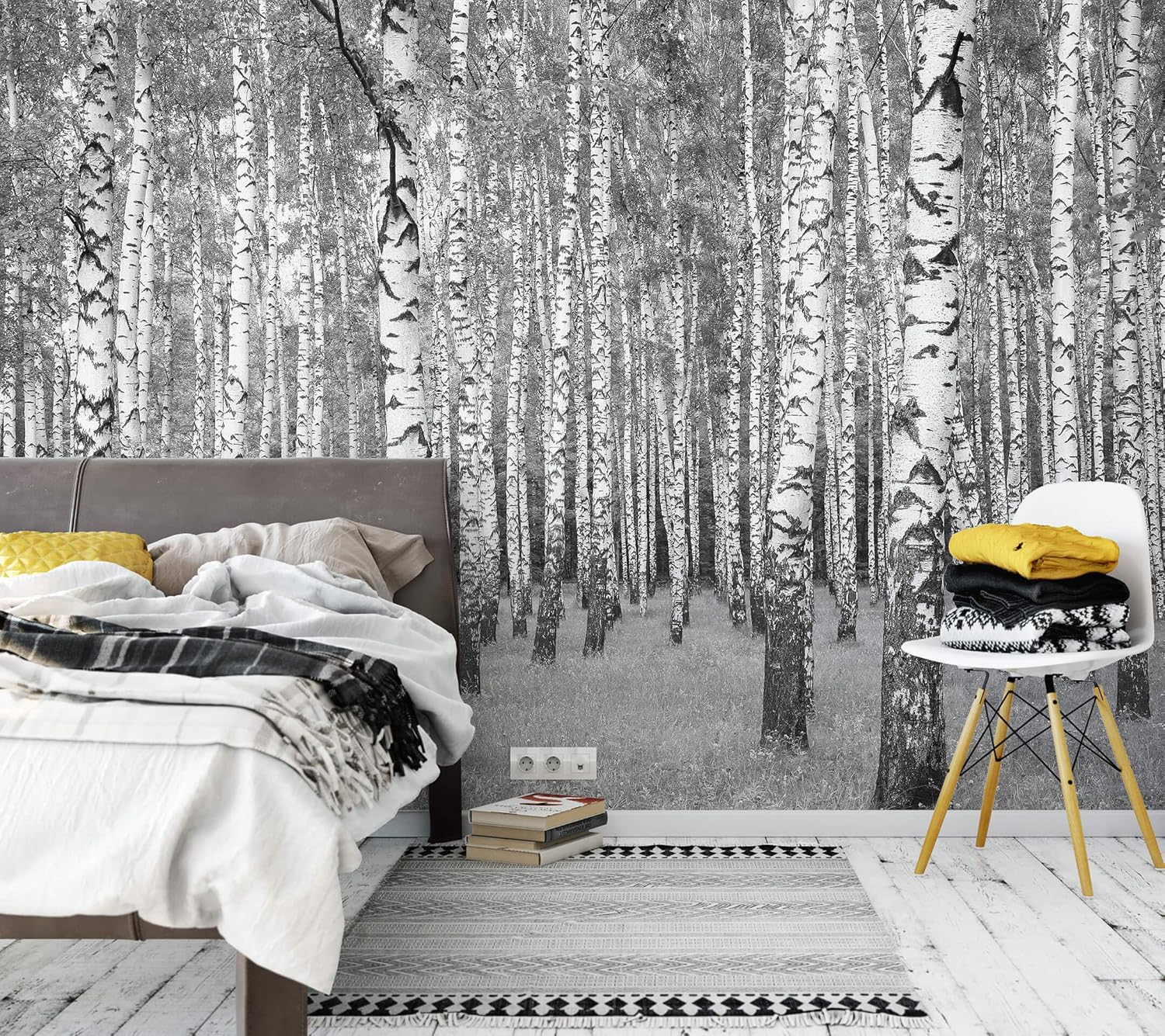 Awallo Fototapete Birkenwald In Grau Schwarz Weiss Vliestapete 336x260cm Xxl Bild Tapete Wand Bild Digitaldruck Amazon De Baumarkt