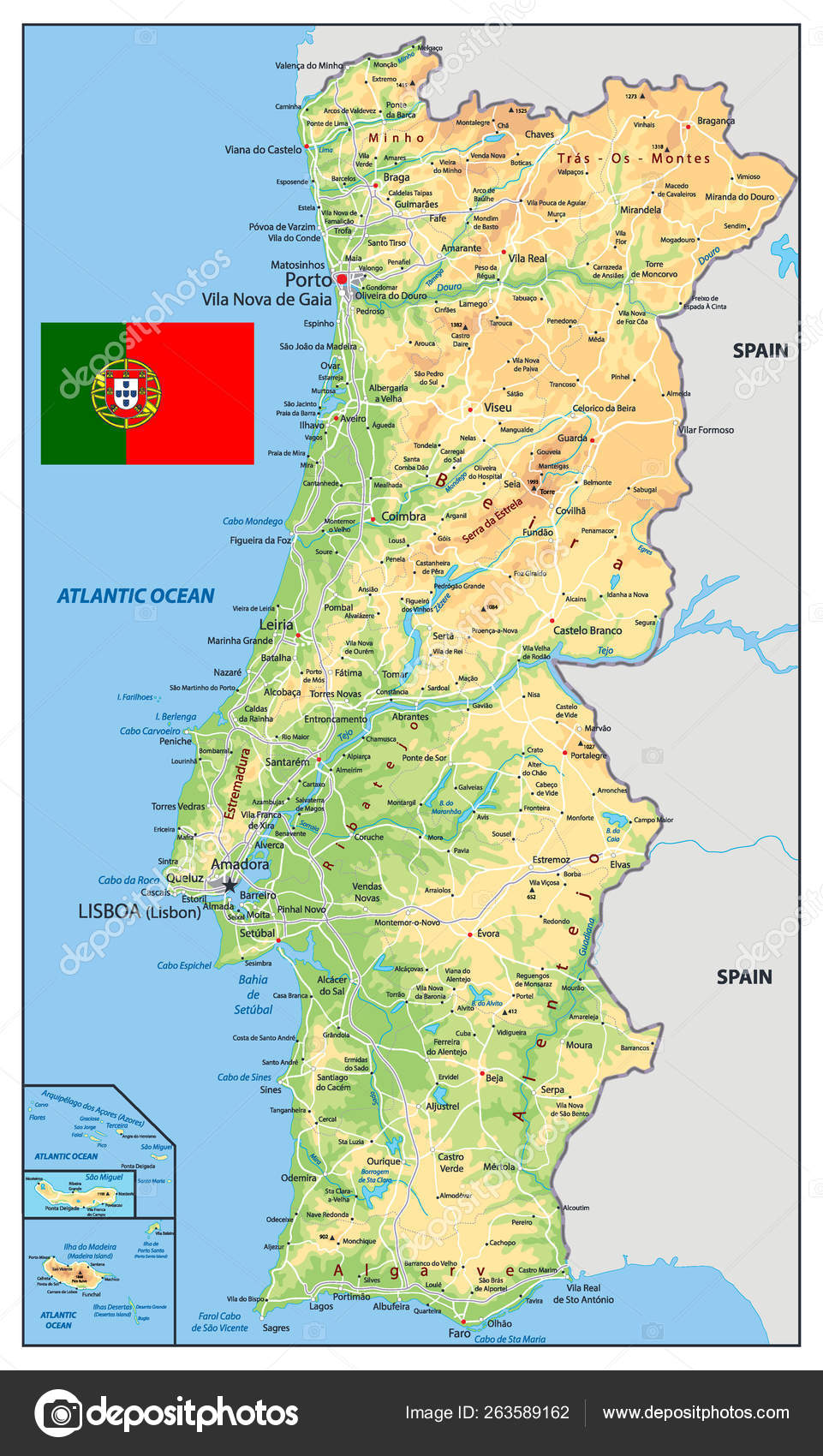 Portugal Physical Map Vector Image By C Cartarium Vector Stock 263589162